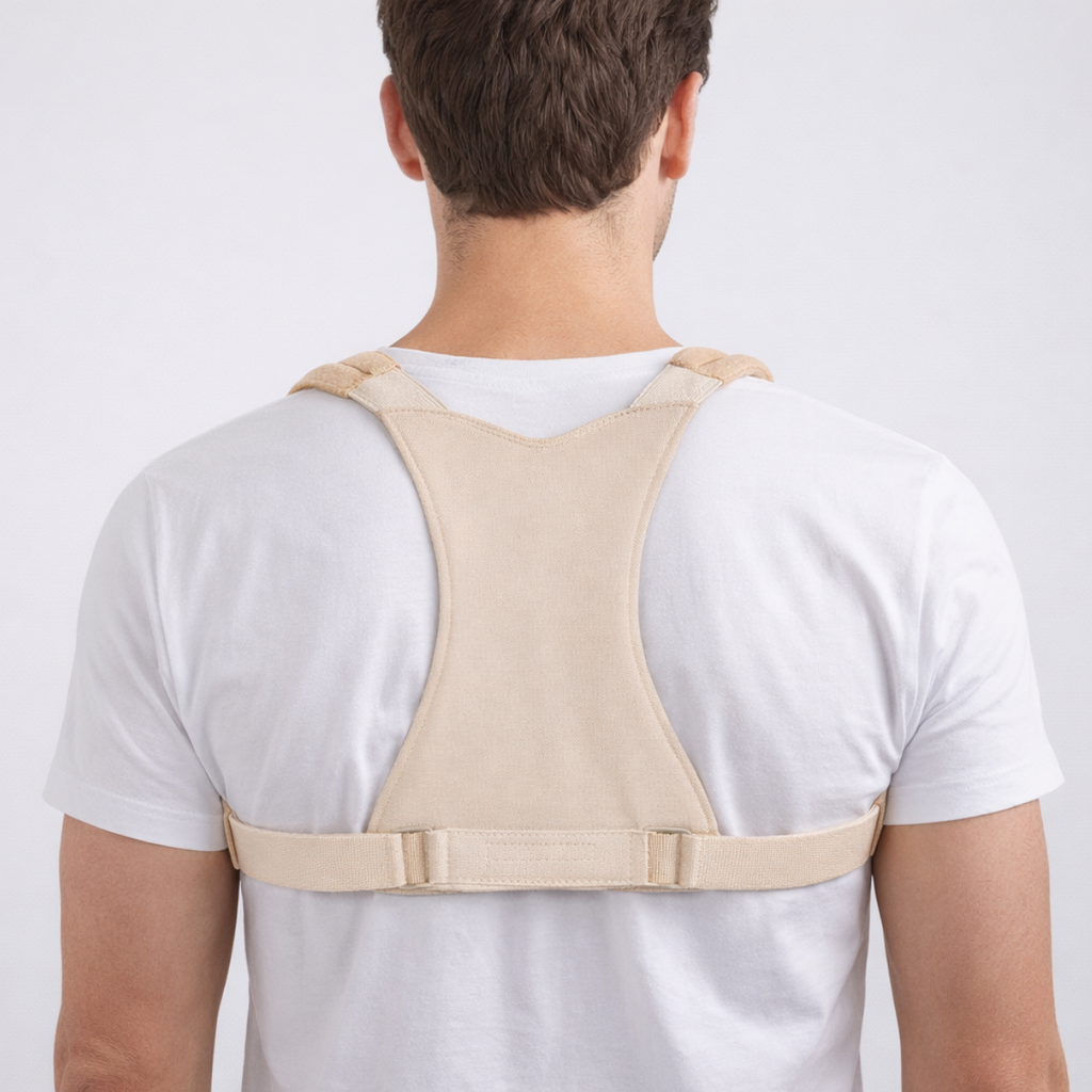 O Corretor Postural Ortopédico Mova foi desenvolvido para auxiliar no alinhamento da coluna, reposicionando os ombros de forma confortável e progressiva, sem limitar os movimentos naturais do corpo.