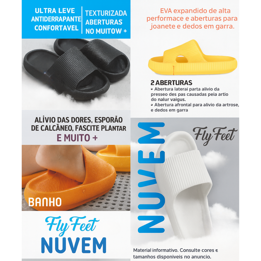 Sinta a sensação de andar nas nuvens. O Chinelo Nuvem Ortho Pauher é fabricado em material ultramacio e anatômico, oferecendo amortecimento, conforto e alívio para pés cansados.