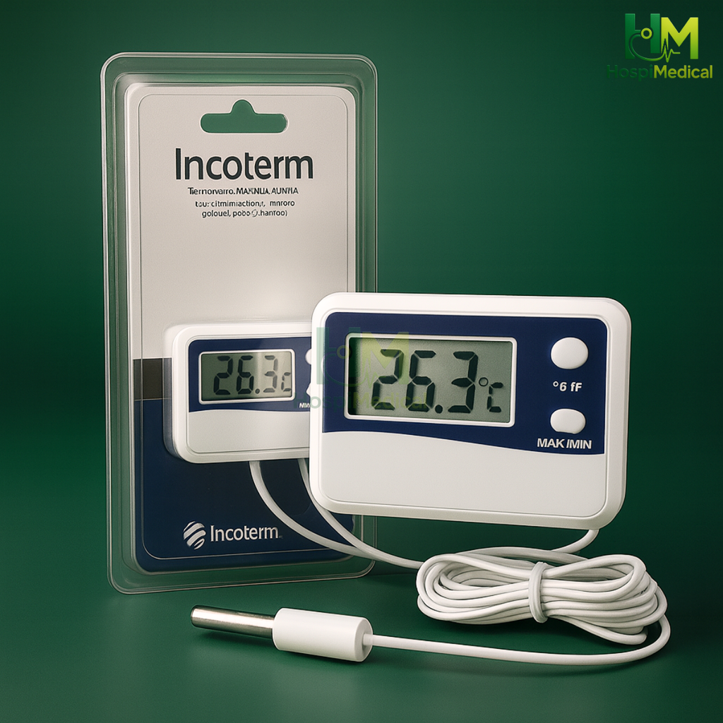 O Termômetro Mini Digital Incoterm com Cabo de 2m é ideal para monitoramento preciso da temperatura em geladeiras, freezers e ambientes controlados. Possui função de máxima e mínima, oferecendo maior segurança no armazenamento de vacinas, medicamentos e alimentos sensíveis.